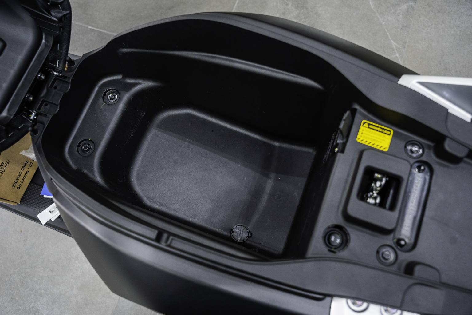 - Cốp xe rộng rãi: Dung tích 22L, thoải mái chứa 2 mũ bảo hiểm nửa đầu và nhiều vật dụng cá nhân.